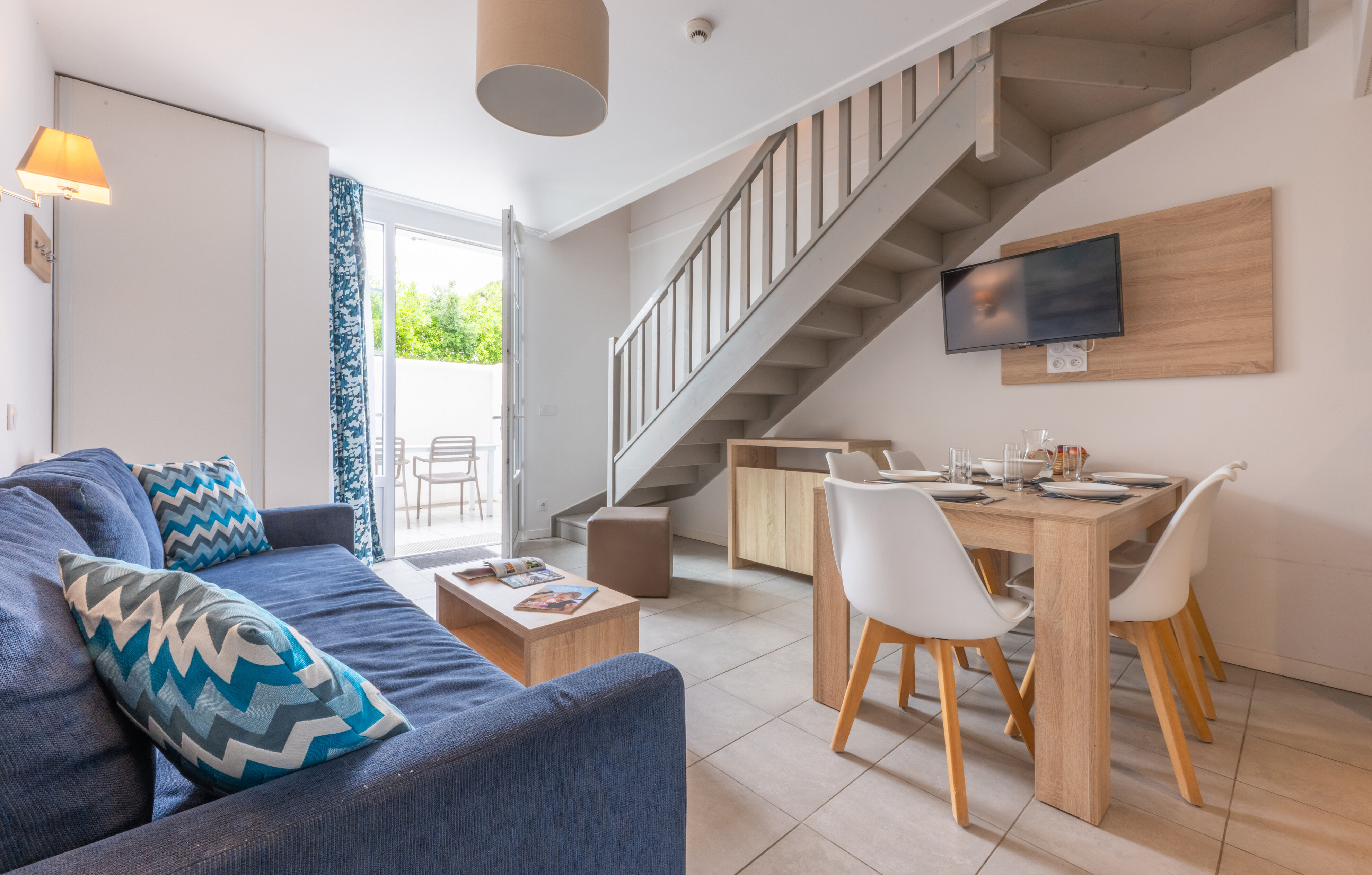 Das zweistöckige 3-Zimmer Apartment befindet sich beim Pool und verfügt über: 1 Wohnzimmer mit ausziehbarer Doppelcouch, Kitchenette, 1 Schlafzimmer mit Doppelbett, 1 Schlafbereich mit 1 Etagenbett, 1 Badezimmer mit Dusche, 1 ausgestatteter Balkon mit Sonnenschirm.