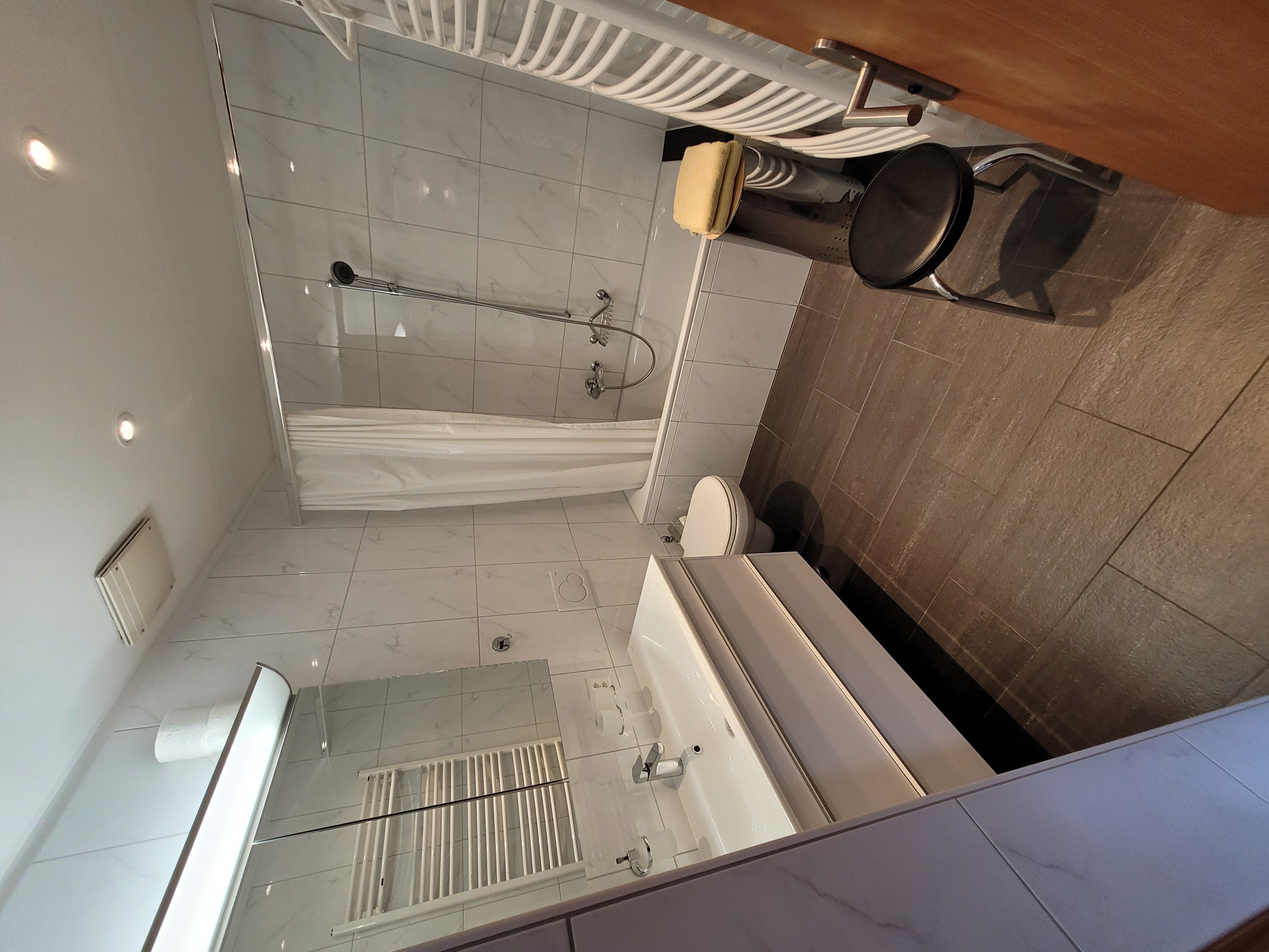 Das 2,5-Zimmer Komfort Apartment im 2. Stock verfügt über: 1 Wohn-/Schlafzimmer mit Divanbett für 1 Person und Divanbett für 2 Personen, offene Küche, 1 Schlafzimmer mit französischem Bett (180 cm), 1 Badezimmer mit Dusche, 1 ausgestatteter Balkon, 1 ausgestattete Dachterrasse erreichbar durch eine Treppe