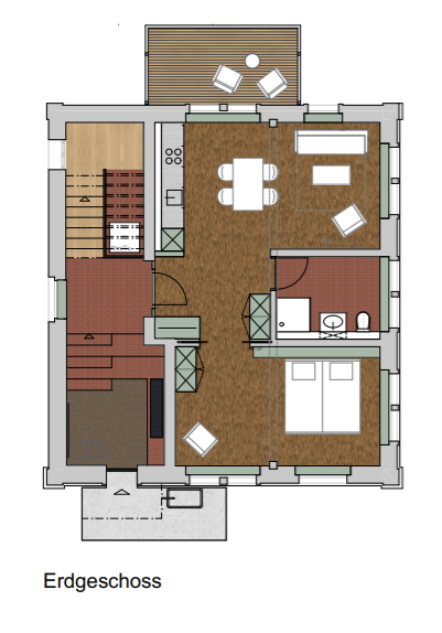 Das 2.5-Zimmer Modern Apartment im Huus Bronnetrog verfügt über 1 Wohn-/Esszimmer mit 1 Doppel-Schlafsofa und TV, Küche, 1 Schlafzimmer mit 1 Doppelbett Boxspring (2 Matratzen und Topper 90x200 cm), 1 Badezimmer mit Dusche, 1 ausgestatteter Balkon